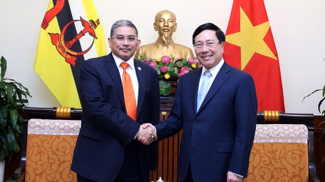 (VOVWORLD) - เมื่อเช้าวันที่ 25 มีนาคม ณ กรุงฮานอย รองนายกรัฐมนตรีและรัฐมนตรีว่าการกระทรวงการต่างประเทศฝ่ามบิ่งมิงได้ให้การต้อนรับนาย Dato Erywan Pehin Yusof รัฐมนตรีว่าการกระทรวงการต่างประเทศบรูไนก่อนการเยือนเวียดนามของกษัตริย์ฮาสซานัลโบเกียห์แห่งบรูไนในระหว่างวันที่ 26-28 มีนาคม