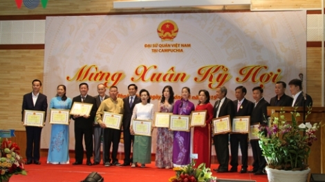 (VOVWORLD) - เมื่อค่ำวันที่ 25 มกราคม ณ กรุงพนมเปญ ประเทศกัมพูชา สถานทูตเวียดนามประจำประเทศกัมพูชาได้จัดกิจกรรมต้อนรับวสันต์ฤดูปีกุน 2019 ให้แก่ชมรมชาวเวียดนามที่กำลังอาศัยในประเทศกัมพูชา โดยมีผู้บริหารจังหวัดต่างๆของกัมพูชา เจ้าหน้าที่พนักงานของสถานทูตเวียดนาม สำนักงานตัวแทนของเวียดนามและตัวแทนประชาชนเวียดนามที่กำลังอาศัยในประเทศกัมพูชาหลายร้อยคนเข้าร่วม