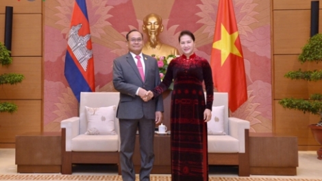 ประธานสภาแห่งชาติเหงวียนถิกิมเงินให้การต้อนรับรองประธานวุฒิสภากัมพูชา