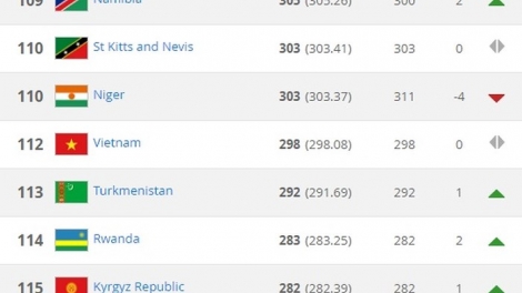 (VOVWORLD) - ทีมฟุตบอลเวียดนาม มี1220คะแนน อยู่อันดับที่ 102 ของโลก อันดับ17 ของเอเชียและอันดับหนึ่งในเอเชียตะวันออกเฉียงใต้