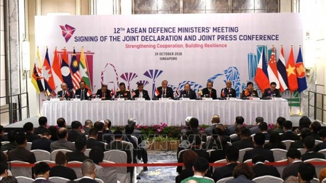 (VOVWORLD) -ภายหลังประชุมมาเป็นเวลา2วัน การประชุมรัฐมนตรีว่าการกระทรวงกลาโหมอาเซียนครั้งที่12หรือADMM12และการประชุมรัฐมนตรีว่าการกระทรวงกลาโหมขยายวงหรือADMM+ครั้งที่5ได้เสร็จสิ้นลง ณ ประเทศสิงคโปร์ โดยมีผู้บริหารกระทรวงกลาโหมของ10ประเทศอาเซียนและ8ประเทศหุ้นส่วนได้แก่สหรัฐ รัสเซีย อินเดีย ญี่ปุ่น จีน สาธารณรัฐเกาหลี ออสเตรเลียและนิวซีแลนด์เข้าร่วม ซึ่งคณะผู้แทนเวียดนามนำโดยพลเอก โงซวนหลิก รัฐมนตรีว่าการกระทรวงกลาโหมได้เข้าร่วมการประชุมดังกล่าว