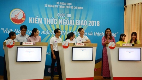 (VOVWORLD) - เวียดนามในอาเซียนที่พัฒนาและเจริญรุ่งเรือง นี่คือหัวข้อของการประกวดความรู้ด้านการทูตซึ่งจัดโดยสำนักงานด้านการต่างประเทศของนครโฮจิมินห์เมื่อเช้าวันที่ 24 สิงหาคม โดยมีเจ้าหน้าที่ข้าราชการและพนักงานของสำนักงานด้านการต่างประเทศจากจังหวัดและนครต่างๆในภาคใต้เข้าร่วม นี่คือกิจกรรมเพื่อฉลองครบรอบ 63 ปีวันก่อตั้งหน่วยงานการทูตเวียดนาม 28 สิงหาคม