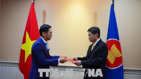 (VOVWORLD) -เมื่อวันที่6สิงหาคม ณ สำนักงานของคณะเลขาธิการอาเซียนในกรุงจากาตาร์ ประเทศอินโดนีเซีย นาย เจิ่นดึ๊กบิ่ง เอกอัครราชทูตและหัวหน้าคณะผู้แทนถาวรของเวียดนามประจำอาเซียนได้ยื่นสาส์นตราตั้งต่อเลขาธิการอาเซียน Dato Lim Jock Hoi