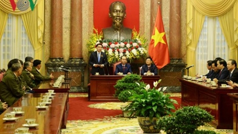ประธานประเทศเจิ่นด่ายกวางให้การต้อนรับคณะผู้แทนประชาชนลาวที่บำเพ็ญประโยชน์ต่อการปฏิวัติเวียดนาม