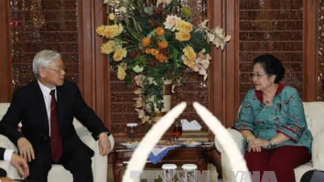 (VOVWORLD) - ในกรอบการเยือนประเทศอินโดนีเซียอย่างเป็นทางการ เมื่อบ่ายวันที่ 23 สิงหาคม ท่าน เหงียนฟู้จ่อง เลขาธิการใหญ่พรรคคอมมิวนิสต์เวียดนามได้พบปะกับนาง เมกาวาตี ซูการ์โนบุตรี หัวหน้าพรรคประชาธิปไตยอินโดนีเซียแห่งการต่อสู้ โดยแจ้งให้ทราบถึงผลการเจรจากับประธานาธิบดี โจโก วีโดโด และบรรดาผู้นำของอินโดนีเซีย