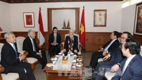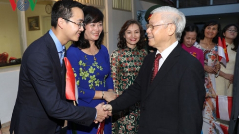 เลขาธิการใหญ่พรรคคอมมิวนิสต์เวียดนามเยือนสถานทูตเวียดนามประจำอินโดนีเซีย