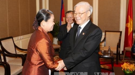 (VOVWORLD) -ในกรอบการเยือนประเทศกัมพูชาอย่างเป็นทางการ เมื่อเช้าวันที่ 21 กรกฎาคม ณ กรุงพนมเปญ เลขาธิการใหญ่พรรคคอมมิวนิสต์เวียดนามเหงียนฟู้จ่องได้ให้การต้อนรับคณะผู้แทนของสมาคมมิตรภาพกัมพูชา – เวียดนามและกลุ่มส.ส.มิตรภาพกัมพูชา – เวียดนาม นำโดยนาง แมนซัมออน รองนายกรัฐมนตรีกัมพูชาและนายกสมาคมมิตรภาพกัมพูชา – เวียดนาม
