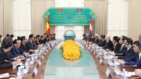 เลขาธิการใหญ่พรรคเหงียนฟู้จ่อง:ขยายความร่วมมือระหว่างท้องถิ่นของเวียดนามกับกัมพูชา