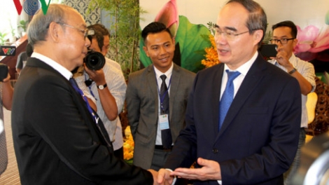 เลขาธิการพรรคสาขานครโฮจิมินห์ เหงวียนเถี่ยนเญิน ให้การต้อนรับประธานวุฒิสภาเมียนมาร์