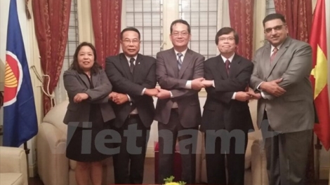 (VOVworld) - ในการประชุมสรุปกิจกรรมในปีที่เวียดนามปฏิบัติหน้าที่ประธานหมุนเวียนอาเซียนในประเทศอาร์เจนตินา เมื่อวันที่ 27 มีนาคม ณ กรุงบัวโนสไอเรส ประเทศอาร์เจนตินา เอกอัครราชทูตจาก 5 ประเทศสมาชิกอาเซียนประกอบด้วยอินโดนีเซีย มาเลเซีย ไทย ฟิลิปปินส์และเวียดนามได้ให้คำมั่นที่จะผลักดันกิจกรรมความร่วมมือกับประเทศอาร์เจนตินา