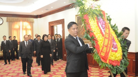 คณะผู้แทนระดับสูงของพรรคและรัฐเวียดนามเข้าร่วมพิธีไว้อาลัยอดีตประธานรัฐสภาลาวสะหมาน วิยะเกด