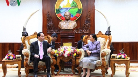 ประธานประเทศ เจิ่นด่ายกวาง พบปะกับบรรดาผู้นำประเทศลาว