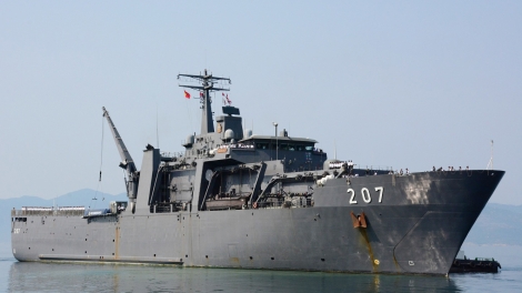 เรือของกองทัพเรือสิงคโปร์เข้าเทียบท่าเรือนานาชาติกามแรง