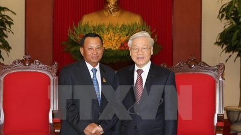(VOVworld) - ท่าน เหงวียนฟู้จ่อง เลขาธิการใหญ่พรรคคอมมิวนิสต์เวียดนามได้ให้การต้อนรับคณะผู้แทนระดับสูง วุฒิสภากัมพูชานำโดยสมเด็จ ไซชุม รองหัวหน้าพรรคประชาชนกัมพูชาและประธานวุฒิสภากัมพูชาที่กำลังอยู่ระหว่าง การเยือนเวียดนาม