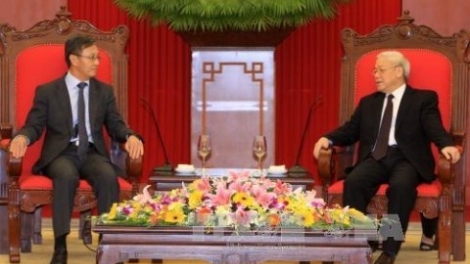เลขาธิการใหญ่เหงียนฟู้จ่องให้การต้อนรับเอกอัครราชทูตลาว