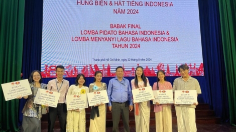 (VOVWORLD) - อินโดนีเซียมีสุภาษิตว่า “ถ้าไม่รู้จะไม่รัก” ซึ่งความหมายของสุภาษิตนี้ก็ตรงกับความรู้สึกของสาวชาวเวียดนามสองคนอย่าง คุณ เจิ่นถิเกี่ยวจิง และ คุณ เจิ่นมิงเหี๊ยว สองผู้ชนะในการประกวดสุนทรพจน์และร้องเพลงภาษาอินโดนีเซียที่มีขึ้น ณ มหาวิทยาลัยสังคมศาสตร์และมนุษยศาสตร์ สังกัดมหาวิทยาลัยแห่งชาตินครโฮจิมินห์ เมื่อวันที่ 22 สิงหาคม ที่ผ่านมา โดยการประกวดในครั้งนี้ถือเป็นโอกาสให้นักศึกษาภาควิชาอินโดนีเซียศึกษาที่ได้เรียนรู้ภาษา วัฒนธรรม และผู้คนของประเทศอินโดนีเซียค่อยๆ รู้สึกหลงไหลในกับประเทศนี้อย่างไม่รู้ตัว