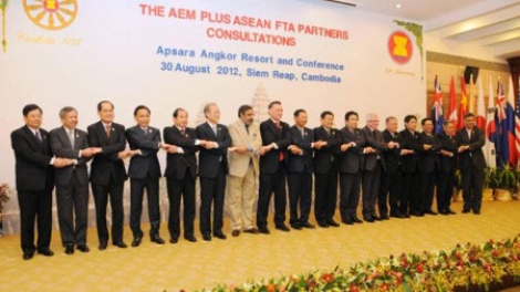 (VOVworld) – อาเซียนและ๖ประเทศคู่เจรจาคือ ออสเตรเลีย นิว ซีแลนด์ ญี่ปุ่น อินเดีย สาธารณรัฐเกาหลีและจีนจะเริ่มการเจรจาเกี่ยวกับข้อตกลงการค้าเสรีหรือ FTAระดับภูมิภาค ณ ประเทศกัมพูชาซึ่งเป็นประธานอาเซียนในปลายเดือนนี้ เมื่อข้อตกลงFTAใหม่มีผลบังคับใช้จะเปิดโอกาสใหม่ให้แก่ทุกประเทศมาชิกอาเซียนและบรรดาประเทศคู่เจรจาของอาเซียน