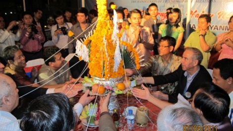 (VOVworld) – ในโอกาสเทศกาลสงกรานต์ เมื่อวันที่๖เดือนนี้ สหพันธ์องค์การมิตรภาพสาขากรุงฮานอยได้ประสานกับสถานทูตประเทศลาว ไทย กัมพูชาและพม่าจัดการพบปะสังสรรค์มิตรภาพและอวยพรปีใหม่๔ประเทศลาวไทย กัมพูชา และพม่าซึ่งเป็นกิจกรรมที่จัดขึ้นทุกปีเพื่อขยายสัมพันธไมตรีระหว่างประชาชน เวียดนามกับประชาชนประเทศต่างๆดังกล่าว