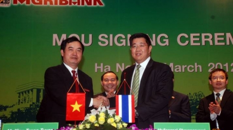 (VOVworld)- แหล่งข่าวจากธนาคารกสิกรไทยรายงาน เมื่อวันที่ 19 มีนาคม ณ กรุงฮานอย ธนาคารกสิกรไทยได้ขยายเครือข่ายการบริการเตรียมรองรับประชาคมเศรษฐกิจอาเซียนปี 2558 โดยการร่วมมือกับธนาคารพาณิชย์อีกแห่งของเวียดนามคือธนาคารเกษตรและพัฒนาชนบทเวียดนาม AGRIBANK หรืออกริแบงก์