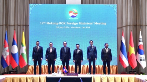 (VOVWORLD) - ในกรอบการประชุมรัฐมนตรีว่าการกระทรวงการต่างประเทศอาเซียน หรือ AMM ครั้งที่ 57 และการประชุมต่างๆที่เกี่ยวข้อง ณ กรุงเวียงจันทน์ ประเทศลาว เมื่อวันที่ 26 กรกฎาคม นาย โด๊ะหุ่งเหวียด รัฐมนตรีช่วยว่าการกระทรวงการต่างประเทศได้นำคณะผู้แทนเวียดนามเข้าร่วมการประชุมรัฐมนตรีว่าการกระทรวงการต่างประเทศความร่วมมือแม่โขง-ญี่ปุ่น หรือ MJC ครั้งที่ 15 และการประชุมรัฐมนตรีว่าการกระทรวงการต่างประเทศความร่วมมือแม่โขง-สาธารณรัฐเกาหลี หรือ MKC ครั้งที่ 12