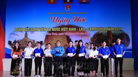 (VOVWORLD) -ในโอกาสนี้ สหพันธ์เยาวชนจังหวัดกอนตุมร่วมกับมหาวิทยาลัยดานังสาขากอนตุม มอบทุนการศึกษาจำนวน 20 ทุน ให้แก่นักศึกษาที่มีผลการเรียนดี.