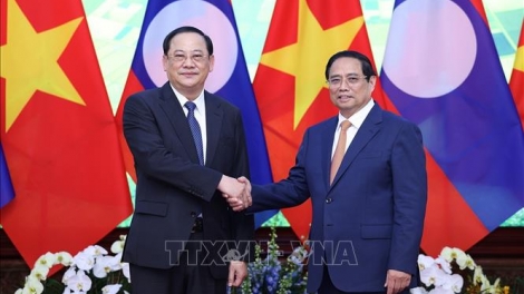 นายกรัฐมนตรี ฝ่ามมิงชิ้ง ให้การต้อนรับนายกรัฐมนตรีลาว