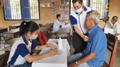 (VOVWORLD) - เนื่องในโอกาสเทศกาลปีใหม่ Chol Chnam Thmay ของชาวกัมพูชา สถานเอกอัครราชทูตเวียดนามประจำประเทศกัมพูชา ได้ร่วมกับกลุ่มผู้ประกอบการเวียดนามที่กำลังประกอบธุรกิจในกัมพูชาและองค์กรการกุศลเวียดนามหลายแห่ง จัดกิจกรรมตรวจรักษาพยาบาล แจกยาฟรีและมอบของขวัญให้แก่ชาวกัมพูชาเชื้อสายเวียดนามและกลุ่มชนเผ่าเขมรที่มีฐานะยากจนในจังหวัดต่างๆ ของกัมพูชา