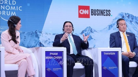 (VOVWORLD) -ในโอกาสเข้าร่วมการประชุมฟอรั่มเศรษฐกิจโลกหรือ WEF ปี 2024 เมื่อบ่ายวันที่ 17 มกราคม ตามเวลาท้องถิ่น ณ เมืองดาวอส ประเทศสวิตเซอร์แลนด์ นาย ฝามมิงชิ้ง นายกรัฐมนตรี ได้เข้าร่วมและเป็นวิทยากรในการอภิปราย “บทเรียนจากอาเซียน” โดยมีการเข้าร่วมของนายเศรษฐา ทวีสิน นายกรัฐมนตรีไทย นาย Ferdinand Martin G. Romualdez ประธานสภาล่างฟิลิปปินส์ นาง Ngozi Okonjo-Iweala ผู้อำนวยการใหญ่องค์การการค้าโลกและตัวแทนของประเทศ ดินแดน เครือบริษัทและสถานประกอบการต่างๆ