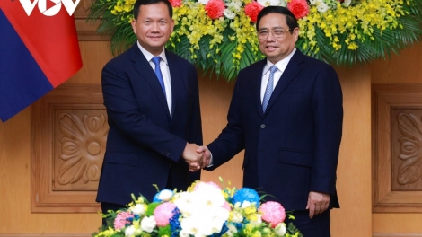 (VOVWORLD) - เช้าวันที่ 12 ธันวาคม นายกรัฐมนตรี ฝ่ามมิงชิ้งและนายกรัฐมนตรีกัมพูชา ฮุน มาเนต ได้เข้าร่วมฟอรั่มส่งเสริมการลงทุนและการค้าเวียดนาม-กัมพูชา