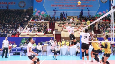 (VOVWORLD) - ในการแข่งขันวอลเลย์บอลชายกองทัพอาเซียนปี 2023 รอบชิงชนะเลิศเมื่อค่ำวันที่ 8 ตุลาคม ณ นครโฮจิมินห์ ทีมวอลเลย์บอลชายเวียดนามสามารถเอาชนะทีมไทย 3-1 เซ็ต คว้าแชมป์วอลเลย์บอลชายกองทัพอาเซียนปี 2023 ส่วนอินโดนีเซียได้อันดับที่ 3