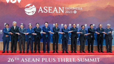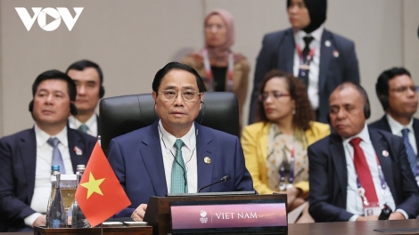 (VOVWORLD) - ในการประชุมครบองค์ผู้นำอาเซียนครั้งที่ 43 ณ กรุงจาการ์ตา ประเทศอินโดนีเซีย นายกรัฐมนตรี ฝ่ามมิงชิ้ง ได้เผยว่า เพื่อธำรงสถานะของอาเซียนที่เป็นศูนย์กลางแห่งการขยายตัว ต้องยกระดับการพึ่งตนเองผ่านการผลักดันการเชื่อมโยงด้านเศรษฐกิจ ขยายตลาดของประเทศสมาชิก อำนวยความสะดวกให้แก่การค้าและการลงทุน