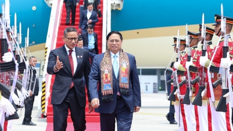 นายกรัฐมนตรี ฝามมิงชิ้งห์ เดินทางถึงอินโดนีเซีย เริ่มกิจกรรมในกรอบการประชุมผู้นำอาเซียนครั้งที่ 43