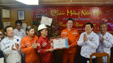 (VOVworld)-เช้าวันที่9กุมภาพันธ์ ประธานประเทศเจืองเตินซางพร้อมผู้บริหารกระทรวงหน่วยงานต่างๆได้ลงพื้นที่อวยพรตรุษเต๊ตเจ้าหน้าที่พนักงานที่ฐานขุดเจาะน้ำมันศูนย์เทคโนโลยีหมายเลข2แห่งโรงงานร่วมทุนขุดเจาะปิโตรเลี่ยมของเวียดโซปิโตร