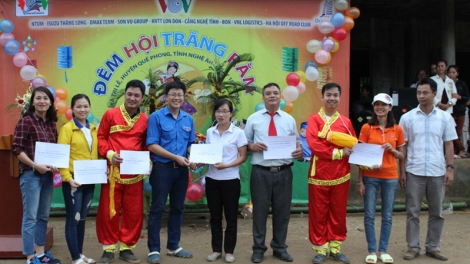 (VOVworld) - ในระหว่างวันที่ 9 ถึงวันที่ 10 กันยายนที่ผ่านมา กองเยาวชนสถานีวิทยุเวียดนามได้ร่วมกับหน่วยงานท้องถิ่นและองค์กรต่างๆ จัดงานเทศกาลไหว้พระจันทร์ให้แก่เด็กๆ ชาวเขาในจังหวัดเหงะอาน
