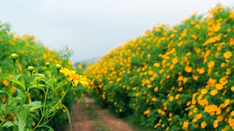 (VOVWorld)-ในช่วงนี้ ดอกบัวตองกำลังบานสะพรั่งอวดโฉมอันสดสวยในเขตเตยเงวียน โดยเฉพาะ เมืองดาลัด