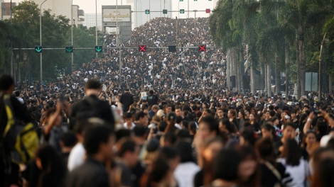 (VOVWorld)-ประชาชนไทยจำนวนมากร่วมร้องเพลงสรรเสริญพระบารมี ถวายแด่พระบาทสมเด็จพระปรมินทรมหาภูมิพลอดุลยเดช ณ บริเวณท้องสนามหลวงเมื่อวันที่ 22 ตุลาคม