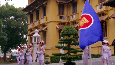 (VOVworld) - lễ thượng cờ ASEAN - เหลเถื่องเก่ออาซีอาน / พิธีเชิญธงอาเซียนขึ้นสู่ยอดเสา - gia nhập ASEAN - ยาเหยิ่บอาซีอาน / เข้าเป็นสมาชิกอาเวียน