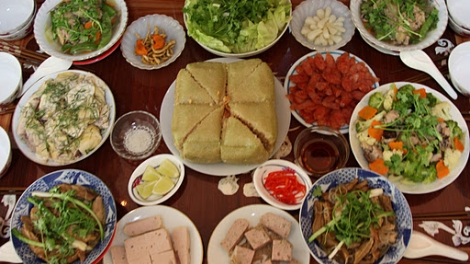 (VOV)- สำหรับอาหารวันตรุษเต๊ตนั้นมักจะมี Nộm (หนม)หรือ ยำ Canh măng (แกงมัง) หรือแกงหน่อไม้ขาหมู giò lụa (หย่อหลัว) หรือหมูยอ Nem (แนม) หรือ ปอเปี้ยะ และbánh chưng หรือขนมข้าวต้มมัดใหญ่