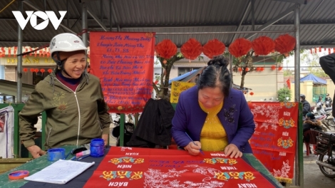(VOVWORLD) -“ฝ่ายโด๋ย”เป็นป้ายผ้าสีที่ลูกหลานมอบให้แก่ผู้หลักผู้ใหญ่เพื่ออวยพรให้มีอายุยืนโดยป้ายผ้านี้มีคำกลอนอวยพรและจะถูกแขวนไว้ในบ้าน นี่เป็นหนึ่งในประเพณีวัฒนธรรมของชนเผ่าไตและหนุ่งที่แสดงออกถึงการเคารพรักและความกตัญญูรู้คุณต่อผู้สูงอายุของลูกหลาน
