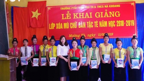 (VOVWORLD) - เพื่อให้ประชาชนชนกลุ่มน้อยในเขตเขาเปลี่ยนแปลงจิตสำนึก ความคิดและวิธีการผลิตเพื่อแก้ไขปัญหาความยากจนและมีชีวิตที่อิ่มหนำผาสุก ทางการอำเภอโซบกบ จังหวัดเซินลาได้กำหนดมาตรการต่างๆ โดยก่อนอื่นคือชาวบ้านทุกคนต้องรู้หนังสือ ดังนั้น ควบคู่กับการรณรงค์ให้เด็กไปโรงเรียนและปฏิบัติการศึกษาภาคบังคับสำหรับเด็กแล้ว ทางการอำเภอฯยังได้เปิดชั้นเรียนต่างๆที่มีการเข้าร่วมของทหารประจำการในท้องถิ่นเพื่อแก้ปัญหาการไม่รู้หนังสือของชาวบ้าน