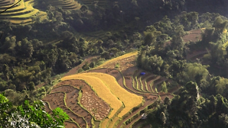 ( VOVworld )-เขตเขาภาคเหนือเวียดนามที่ยังคงความเป็นธรรมชาติที่อุดมสมบูรณ์ไปด้วยป่าดงดิบและเทือบเขาสูงลิ่ว ได้ดึงดูดใจนักท่องเที่ยวแบบเผจญภัยให้มาค้นคว้าเสน่ห์ของเ้ขตนี้ โดยเฉพาะตากล้องทั้งมืออาชีพและสมัครเล่น แต่สิ่งที่สร้างความประทับใจให้กับนักท่องเที่ยวที่เมื่อมาแล้วก็อยากกลับมาเที่ยวอีกคือ ความสวยงามของนาขั้นบันไดที่ลัดเลาะตามไหล่เขาหรือเนินเขาสูง และนาขั้นบันไดได้กลายเป็นเอกลักษณ์การทำนาดำของชาวเขาภาคเหนือเวียดนาม