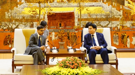 (VOVWORLD) -นาย เหงียนดึ๊กจุง ประธานคณะกรรมการประชาชนกรุงฮานอยได้ให้การต้อนรับเอกอัครราชทูตอินเดีย Pranay Verma ที่เข้าเยี่ยมคารวะเนื่องในโอกาสมารับตำแหน่งตามวาระในเวียดนาม