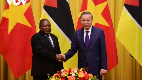 (VOVWORLD) - ตามคำเชิญของเลขาธิการใหญ่พรรค ประธานประเทศเวียดนาม โตเลิมและภริยา นาย ฟิลิปเป จาซินโต นยูซี ประธานาธิบดีสาธารณรัฐโมซัมบิกและภริยาได้เดินทางมาเยือนเวียดนามอย่างเป็นทางการในระหว่างวันที่ 8 - 10 กันยายน ซึ่งเป็นการเยือนเวียดนามครั้งแรกของประธานาธิบดี ฟิลิปเป จาซินโต นยูซี นับตั้งแต่ที่ขึ้นดำรงตำแหน่งและเป็นการเยือนเวียดนามครั้งแรกของประธานาธิบดีโมซัมบิกในรอบ 17 ปี