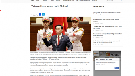(VOVWORLD) - นาย เวืองดิ่งเหวะ ประธานสภาแห่งชาติจะเดินทางไปเยือนประเทศไทยในระหว่างวันที่ 7-10 ธันวาคมตามคำเชิญของนาย วันมูหะมัดนอร์ มะทา ประธานสภาผู้แทนราษฎรไทย การเยือนนี้มีความหมายสำคัญในช่วงที่ทั้งสองประเทศกำลังผลักดันกิจกรรมต่างๆที่เป็นรูปธรรมเพื่อฉลองครบรอบ 10 ปีการสถาปนาความสัมพันธ์หุ้นส่วนเชิงยุทธศาสตร์และเพื่อส่งเสริมความร่วมมือในกรอบรัฐสภาให้มีประสิทธิภาพมากขึ้น