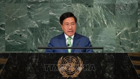 (VOVWORLD) -วันที่ 24 กันยายน รองนายกรัฐมนตรีเวียดนาม ฝ่ามบิ่งมิงห์ ได้เข้าร่วมและกล่าวปราศรัยในการประชุมระดับสูงสมัชชาใหญ่สหประชาชาติสมัยที่ 77 ณ นครนิวยอร์ก ประเทศสหรัฐ โดยได้ยืนยันอีกครั้งถึงทัศนะของรัฐบาลเวียดนามว่า ให้ความสำคัญต่อความร่วมมือพหุภาคี เสนอให้ประชาคมโลกมีความร่วมมือบนเจตนารมณ์แห่งความสามัคคี ร่วมกันฟันฝ่าความท้าทายต่างๆ เพื่อปฏิบัติเป้าหมาย สันติภาพและการพัฒนาอย่างยั่งยืนในทั่วโลก