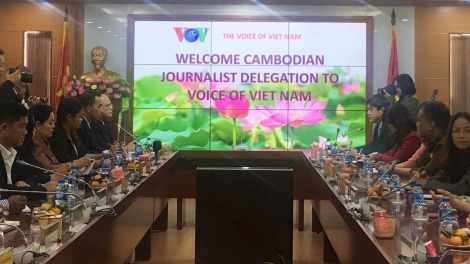 (VOVWORLD) - เช้าวันที่ 22 พฤศจิกายน ณ สำนักงานของสถานีวิทยุเวียดนามในกรุงฮานอย รองประธานสถานีวิทยุเวียดนาม หวูหาย ได้ให้การต้อนรับคณะผู้แทนนักหนังสือพิมพ์กัมพูชา นำโดยนาย Ouk Kimseng ผู้ช่วยรัฐมนตรีที่กำลังอยู่ระหว่างการเยือนเวียดนาม