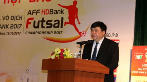 (VOVWORLD) -บ่ายวันที่ 18 ตุลาคม ณ นครโฮจิมินห์ได้มีการแถลงข่าวต่อสื่อมวลชนเกี่ยวกับผู้สนับสนุนการแข่งขันฟุตซอลชิงแชมป์สโมสรเอเชียตะวันออกเฉียงใต้ จัดโดยสหพันธ์ฟุตบอลเวียดนามหรือวีเอฟเอฟและสถานีวิทยุเวียดนามหรือวีโอวี ณ นครโฮจิมินห์ในระหว่างวันที่ 26 ตุลาคม – 3 พฤศจิกายนปี 2017