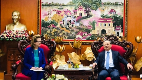 (VOVWORLD) -เช้าวันที่ 18 พฤษภาคม ณ ศูนย์กระจายเสียงแห่งชาติเลขที่ 58 ถนนกว๊านซื้อ กรุงฮานอย นาย โด๋เตี๊ยนสี ประธานสถานีวิทยุเวียดนามได้ให้การต้อนรับนาง Caitlin Wiesen หัวหน้าสำนักงานตัวแทน ยูเอ็นดีพี ประจำเวียดนามและรักษาการผู้ประสานงานของสหประชาชาติประจำเวียดนาม