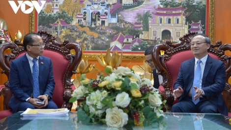 (VOVWORLD) - เมื่อค่ำวันที่ 10 พฤษภาคม ณ ศูนย์กระจายเสียงวิทยุแห่งชาติ เลขที่ 58 ถนนกว๊านซื้อในกรุงฮานอย ประธานสถานีวิทยุเวียดนามหรือวีโอวี โด๋เตี๊ยนสี ได้ให้การต้อนรับคณะปฏิบัติงานของกระทรวงสื่อสารกัมพูชา นำโดยนาย Ly Vannhong ทูตพิเศษของรัฐบาลกัมพูชาและอธิบดีทบวงราชการและการเงินของกระทรวงสื่อสารกัมพูชาที่กำลังอยู่ระหว่างการเยือนเวียดนาม
