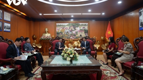 (VOVWORLD) - เมื่อเช้าวันที่ 14 ตุลาคมที่ ศูนย์กระจายเสียงแห่งชาติ เลขที่ 58 ถนนก๊วานซื้อในกรุงฮานอย รองประธานสถานีวิทยุเวียดนามหรือวีโอวี โงมิงเหียน ได้ประชุมกับหัวหน้าสำนักงานตัวแทนขององค์การร่วมมือระหว่างประเทศของญี่ปุ่นหรือ (JICA) Shimizu Akira